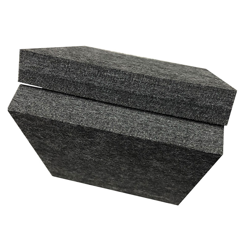 24mm tabula polyester acusticus ex 100% polyester factus est, processus acus pulsandi. Productio est omnino physica & eco-amica, nulla vastitas aquae, emissiones, vastitas. non tenaces, natura rari acousticae tabulae sonum absorptivum & thermarum insulativarum facit cum notis Non-toxicis, non allergenicis, non-irrigentibus ac formaldehydis dolatis non continet et altos NRC: 0.85