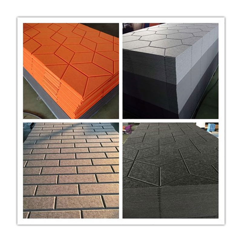 PET V-striata tabula acustica ex 100% polyester facta est, acus pulsandi processui. Productio est omnino physica & eco-amica, nulla vastitas aquae, emissiones, vastitas. non tenaces, natura rari acousticae tabulae sonum absorptivum & thermarum insulativarum facit cum notis Non-toxicis, non allergenicis, non-irrigentibus et formaldehydis dolatis non continet et altos NRC: 0.85